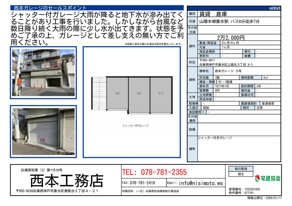 | 所在地 | 兵庫県神戸市垂水区上高丸3 西本ガレージ |